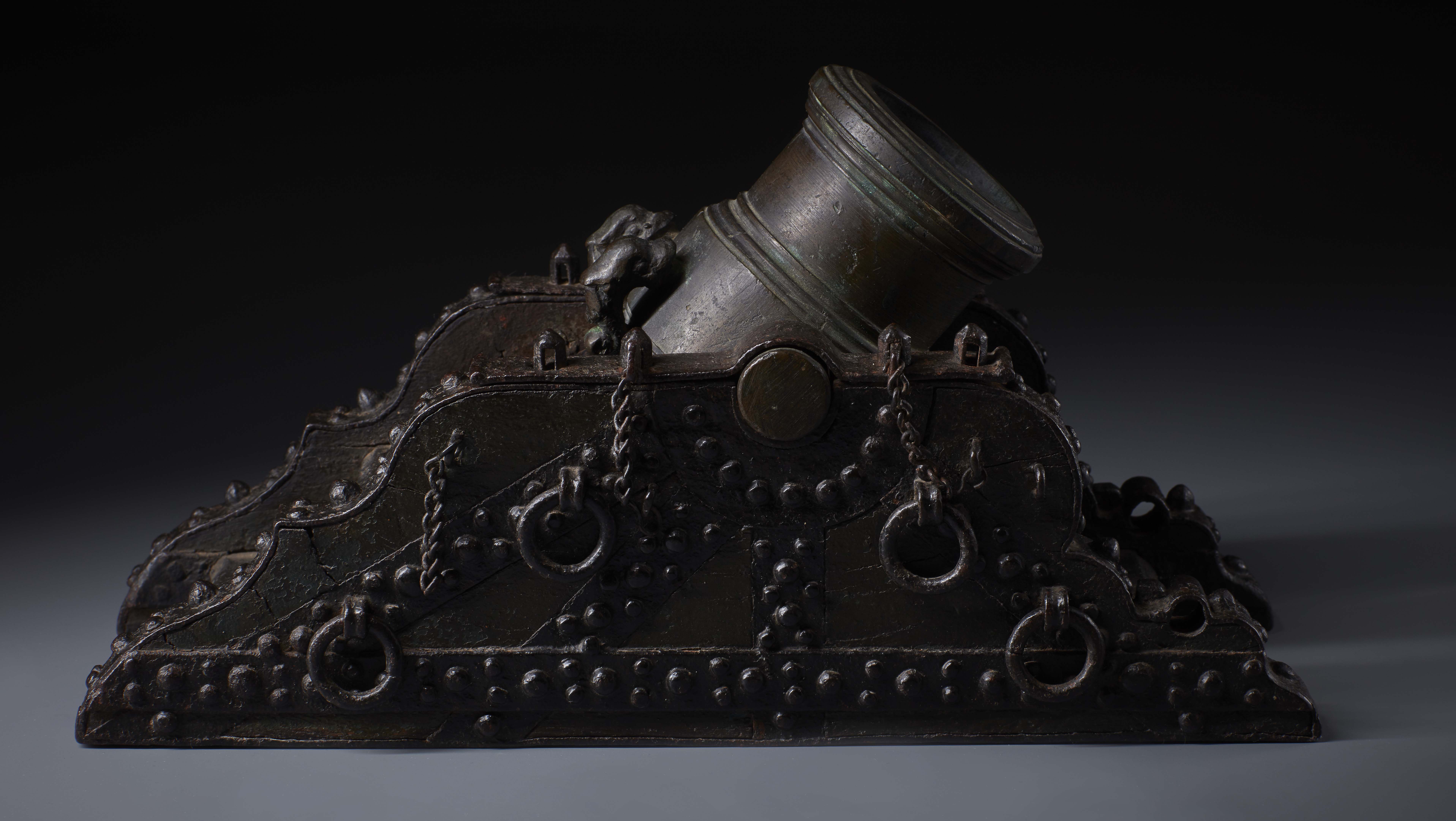 through the bar. Comparable to life-size mortars of that age chains secured these bolts, so they
